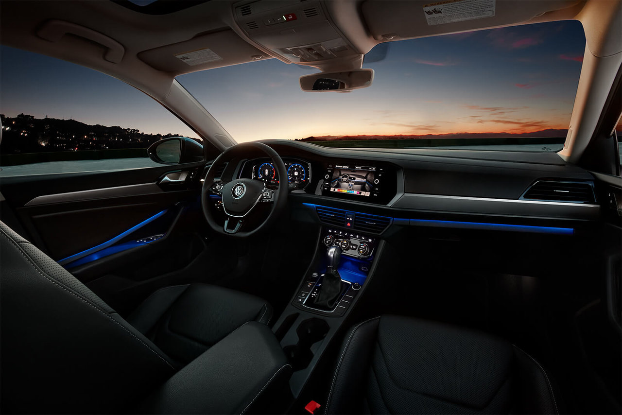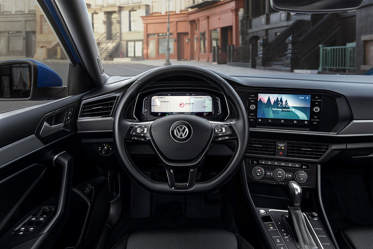 The 2019 Jetta starts with the Comfortline trim, which includes A/C, heated seats, LED headlamps, smartphone integration, alloy wheels, cruise control, a backup camera and 6.5-inch touchscreen system.